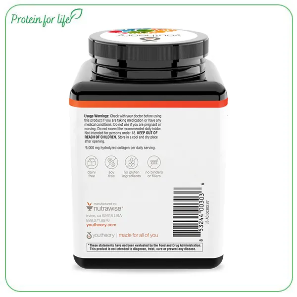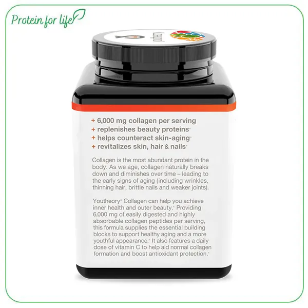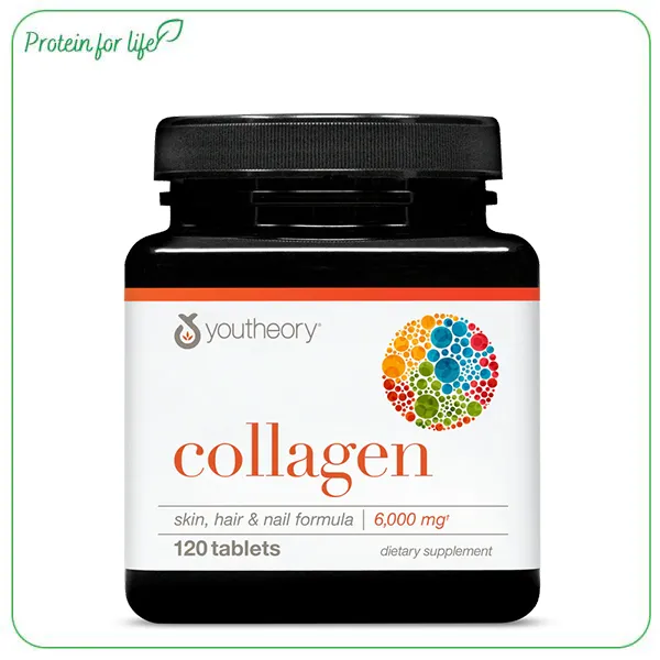 قرص کلازن Youtheory Collagen یک مکمل تخصصی است که برای حمایت همزمان از سلامت پوست، مو، ناخن و مفاصل طراحی شده است. این محصول حاوی کلاژن هیدرولیز شده نوع 1، 2 و 3 بوده که به دلیل فرم هیدرولیزه، جذب بالایی دارد و بدن میتواند بهصورت مؤثر از آن برای بازسازی بافتها استفاده کند.